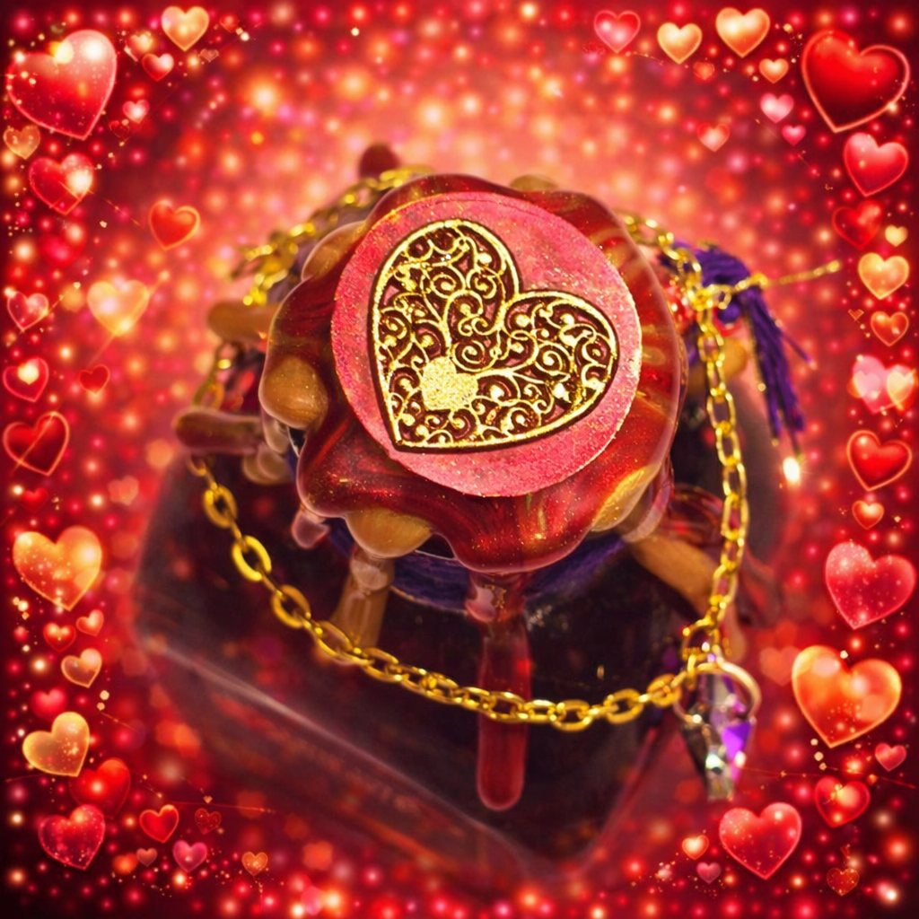 Hand-Finished Details – Wax-sealed top, gold accents, chain and crystal heart charm