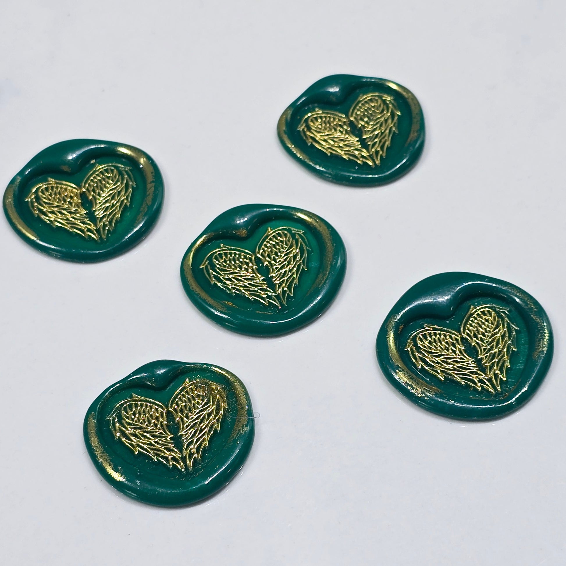 🎉 Angel Wings Heart Wax Seals Green & Gold Set of Five 🎉