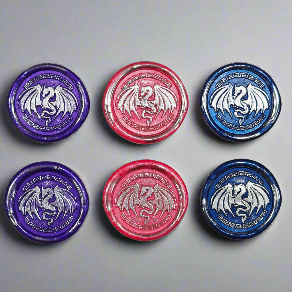 Dragon Wings Spread Wax Seals Purple, Pink, Blue & Silver Set of SIX, with Adhesive.