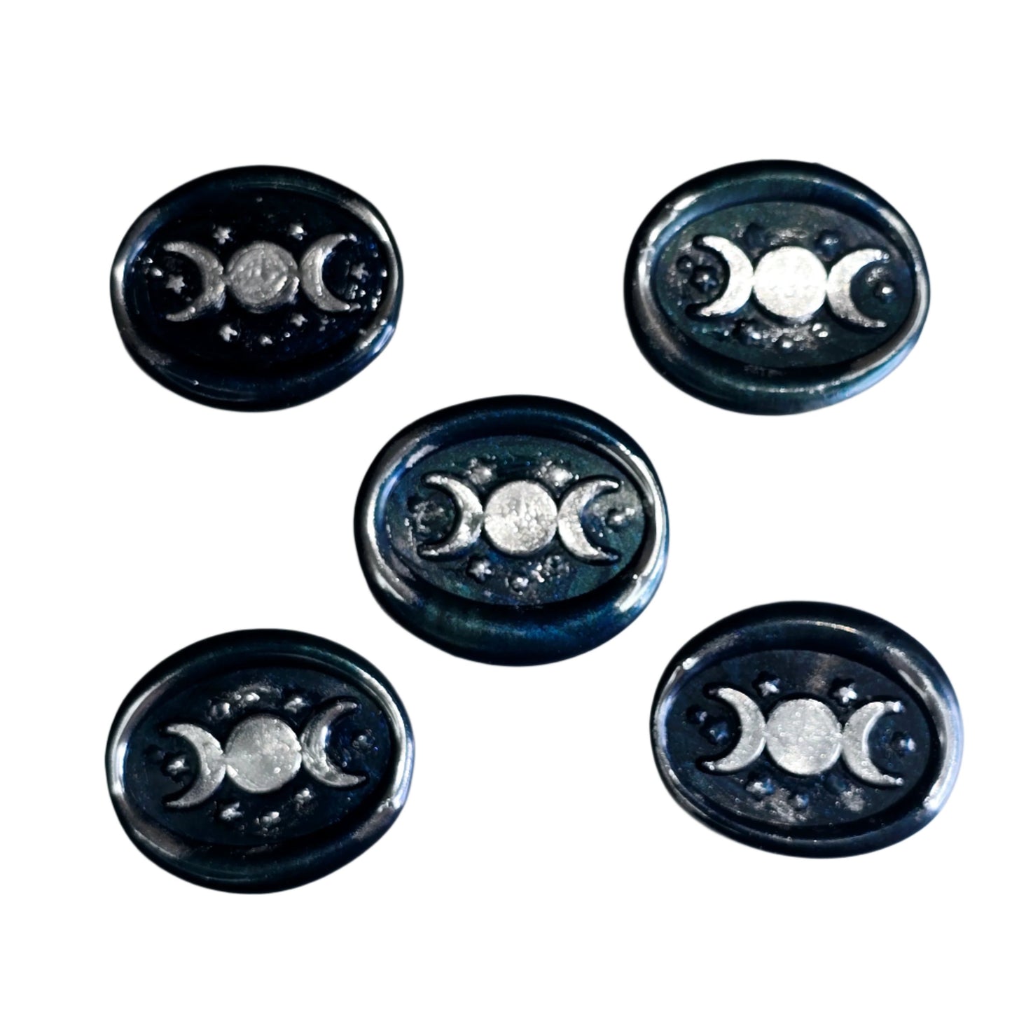 Triple Moon Midnight Blue & Silver Wax Seals Set of Five, for cards, invitations, letters and gifts!