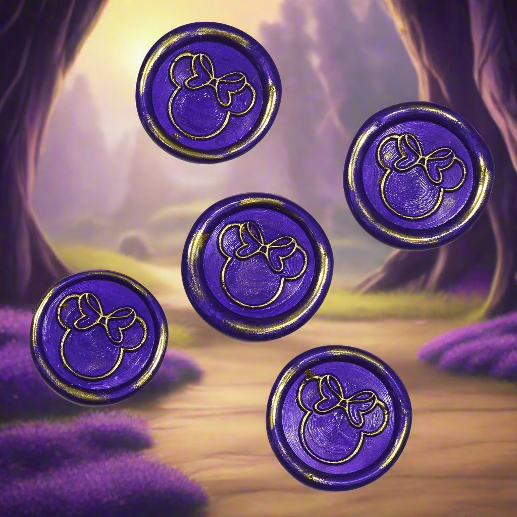 Mouse Wax Seals Purple And Gold Set of five, for cards, invitations, letters and gifts.