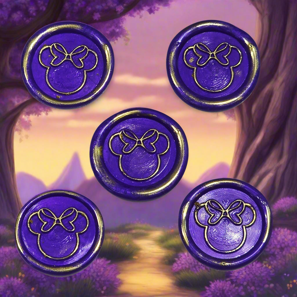 Mouse Wax Seals add a touch of whimsy and charm to any gift, letter, invitation or card. Each seal is beautifully crafted to capture the playful spirit of Mouse, with her iconic bow and cheerful face. The wax seal, when pressed onto the surface, leaves a delicate impression that evokes a sense of nostalgia and elegance. Perfect for sealing envelopes with a personal touch, it brings a bit of magic to your special messages.